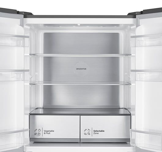 🔷 Kiểu dáng French Door: Thiết kế 4 cánh giúp tối ưu hóa việc lấy thực phẩm mà không cần mở toàn bộ tủ, hạn chế thất thoát hơi lạnh.